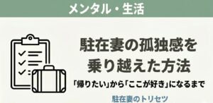 孤独感や「日本に帰りたい」という気持ちへの向き合い方は、 「駐在妻の孤独感を乗り越えた方法」で詳しく解説しています。 渡米前に読んでおくと、心の準備ができて安心です。